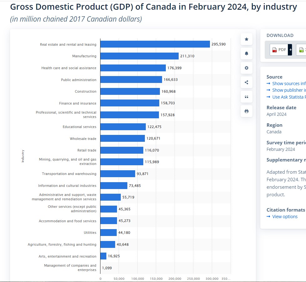 Gross Domestic Product (GDP) of Canada in February 2024, by Industry